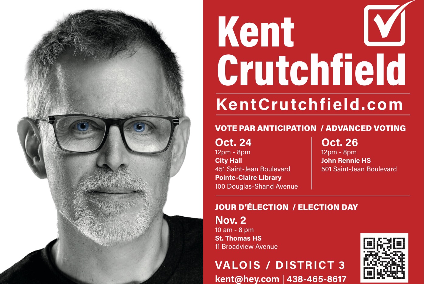 My name is Kent Crutchfield and I am running for Town council in the Valois district of Pointe Claire.